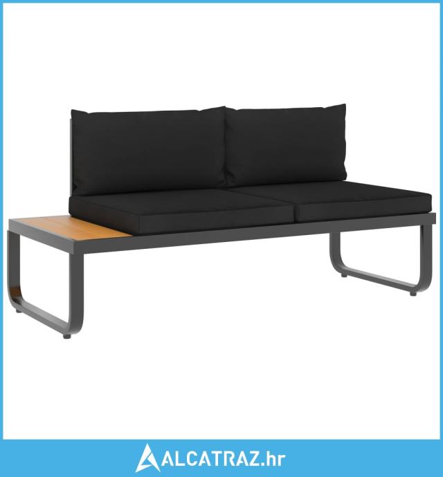 Garnitura je napravljena od aluminija i WPC-a (drveno-plastičnog kompozita), što je čini izdržljivom i otpornom na vremenske utjecaje. Stoga je savršena i za vanjsku uporabu. Uključeni jastuci za sjedala i jastučići za naslon povećat će udobnost garniture, što je čini idealnim mjestom za opuštanje.