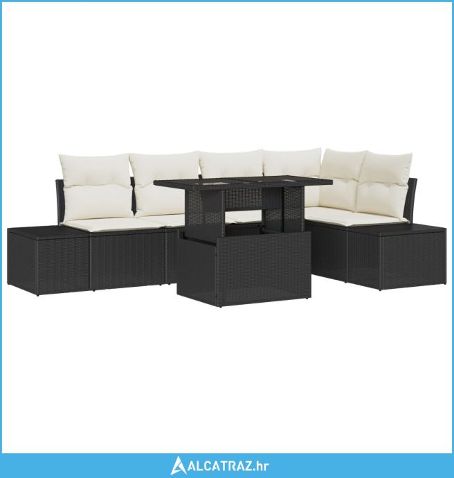 6 delni set baštenskih kauča sa jastucima Crni Poli Ratan - NOVO