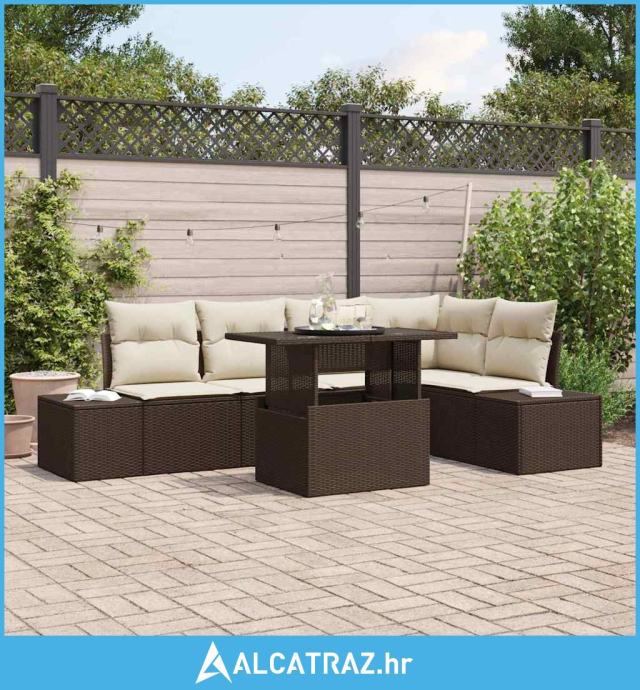 6-dijelna garnitura za vrt s jastučićima smeđa poli ratan - NOVO