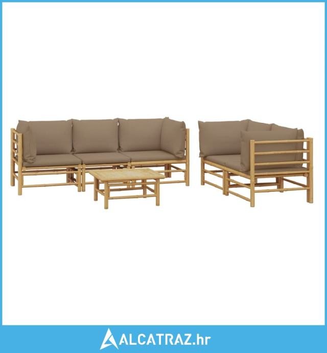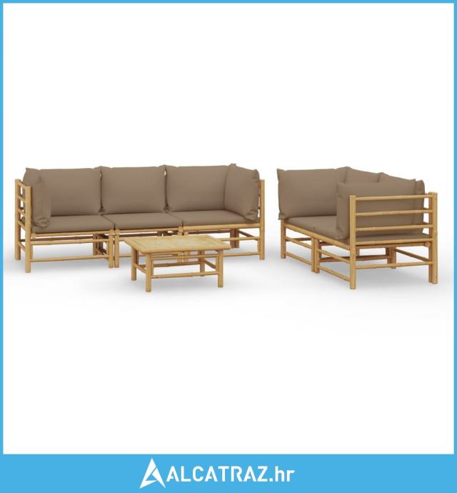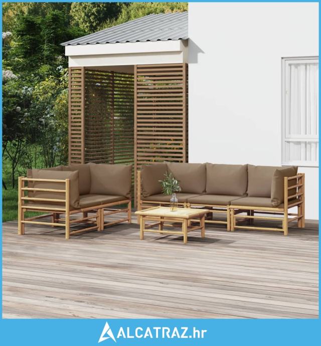 6-dijelna vrtna garnitura od bambusa sa smeđesivim jastucima - NOVO