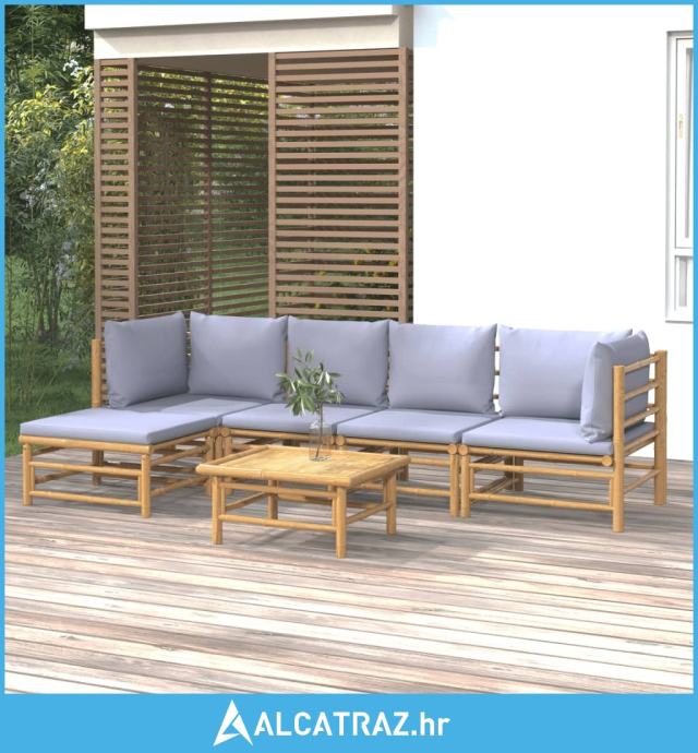 6-dijelna vrtna garnitura od bambusa sa svjetlosivim jastucima - NOVO
