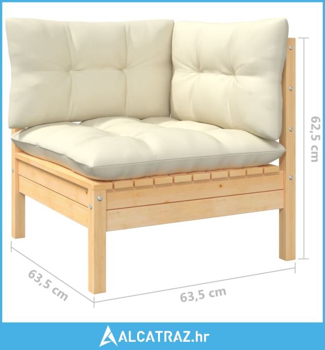 Ova garnitura za terasu napravljena je od masivnog borovog drva, zbog čega je čvrsta i stabilna. Jastuci daju dodatnu udobnost. Možete je kombinirati s drugim modularnim segmentima kako biste stvorili vlastiti razmještaj vrtne garniture!