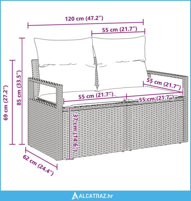 Ova vrtna garnitura odlično kombinira moderni stil i praktičnost, nudeći prostrano i privlačno mjesto za opuštanje vani. Njen elegantan dizajn i prekrasna siva boja stvaraju super atmosferu, čineći je savršenom za balkone ili vrtove te obogaćuju tvoje vanjske okupljanje s prijateljima i obitelji.