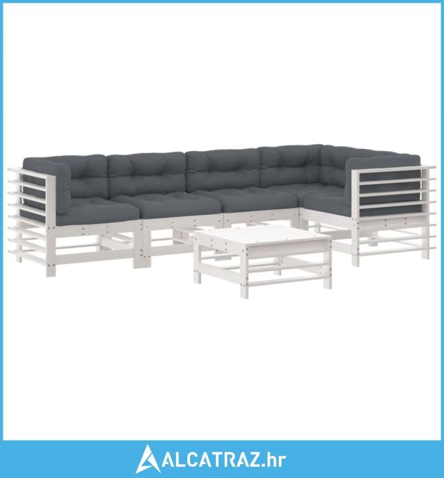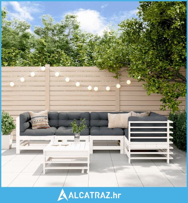 6-dijelna vrtna garnitura s jastucima bijela od masivnog drva - NOVO