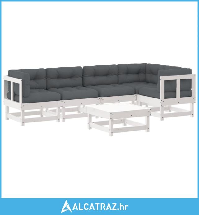 6-dijelna vrtna garnitura s jastucima bijela od masivnog drva - NOVO