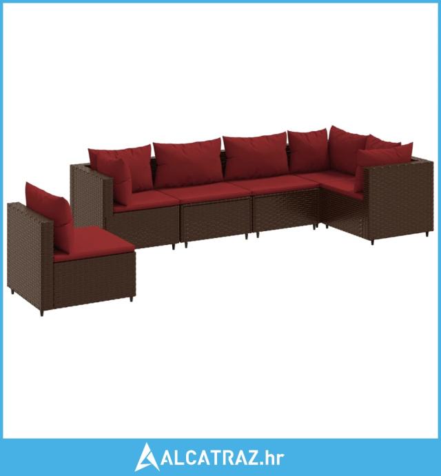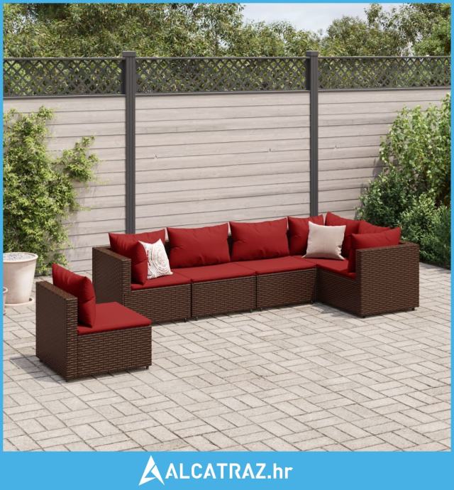 6-dijelna vrtna garnitura s jastucima smeđa od poliratana - NOVO