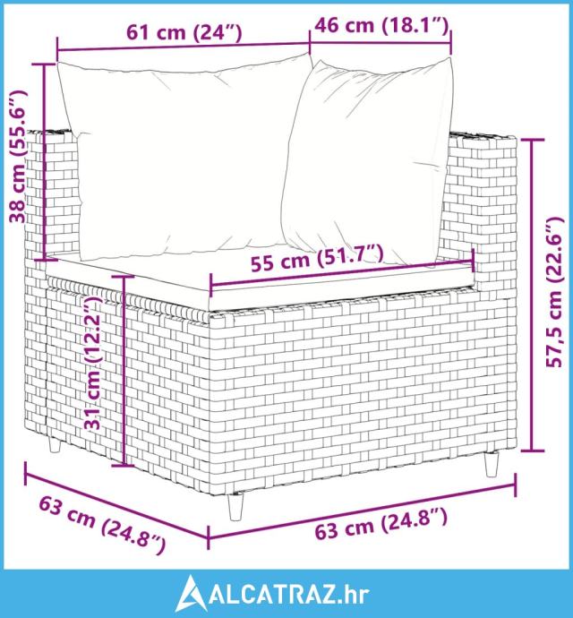 - Veličina jastuka za naslon (M): 61 x 38 cm (Š x D)