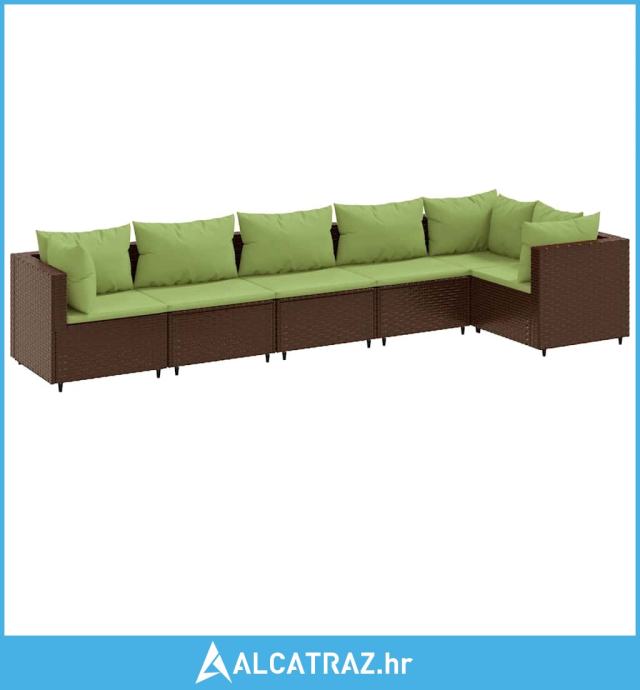 6-dijelna vrtna garnitura s jastucima smeđa od poliratana - NOVO