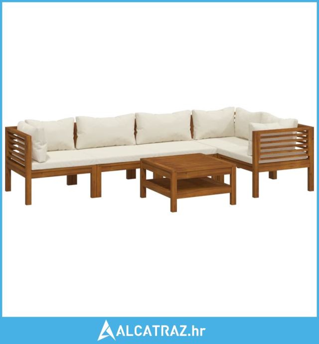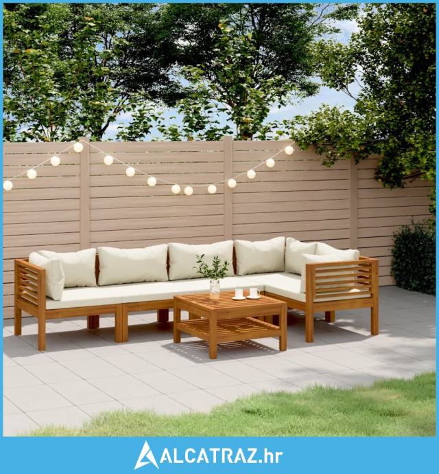 6-dijelna vrtna garnitura s krem jastucima masivno drvo bagrema - NOVO