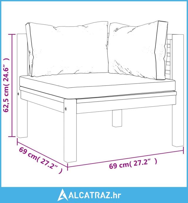 - Dimenzije kutne sofe: 69 x 69 x 62,5 cm (Š x D x V)