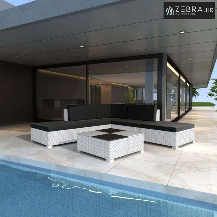 Bijeli ratanski lounge set s crnim jastucima