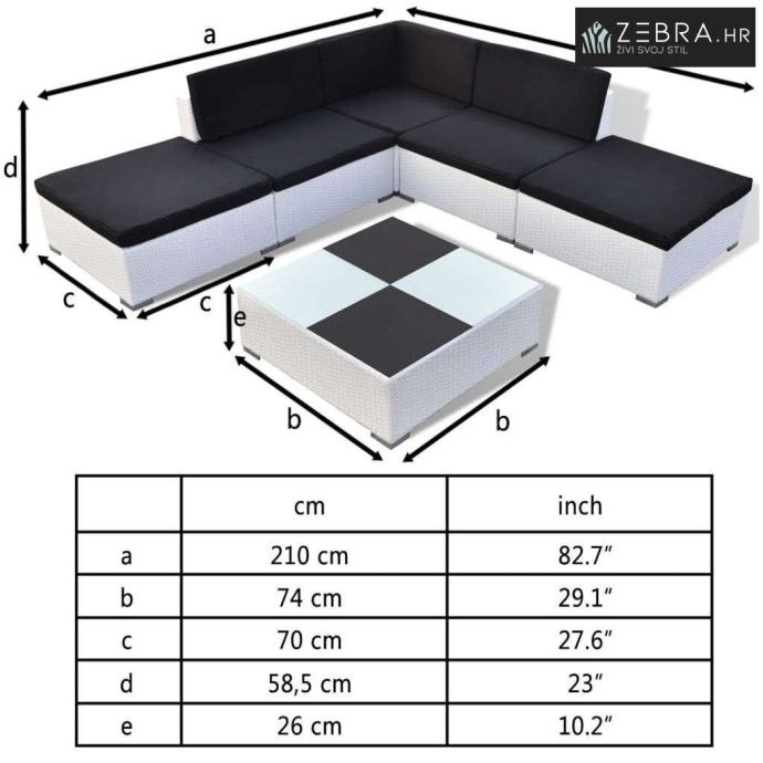 Napomena: Preporučujemo prekrivanje ratanskog seta za vrijeme kiše, snijega ili mraza.