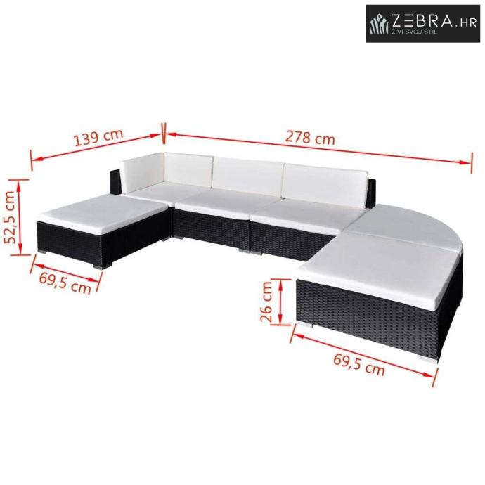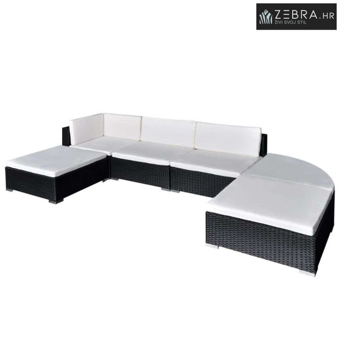 6-dijelna vrtna garnitura od poliratana s jastucima crna - Crna 6