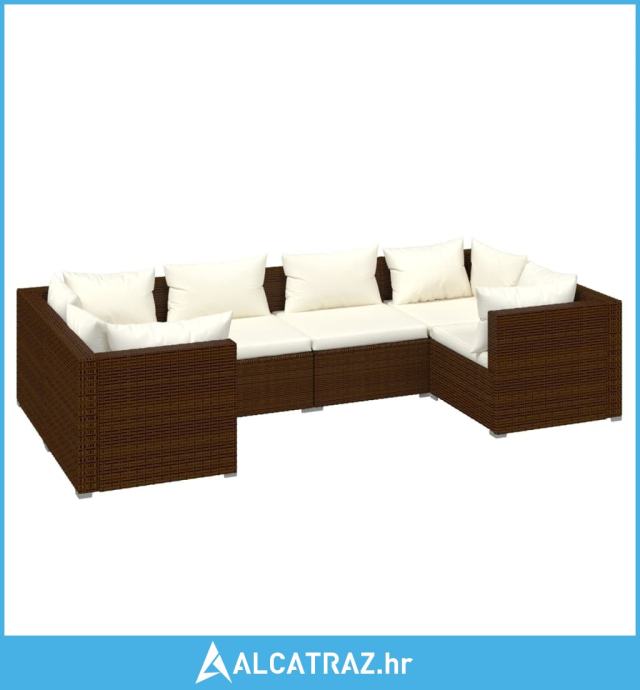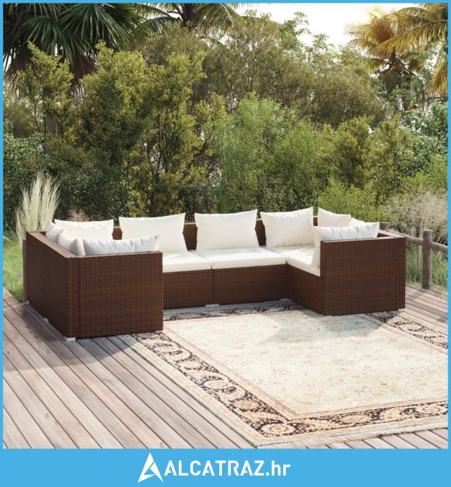 6-dijelna vrtna garnitura od poliratana s jastucima smeđa - NOVO