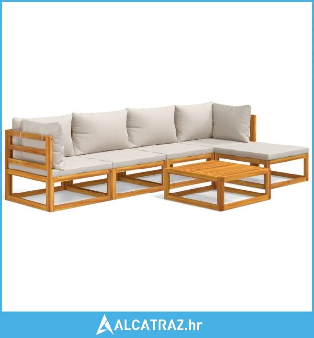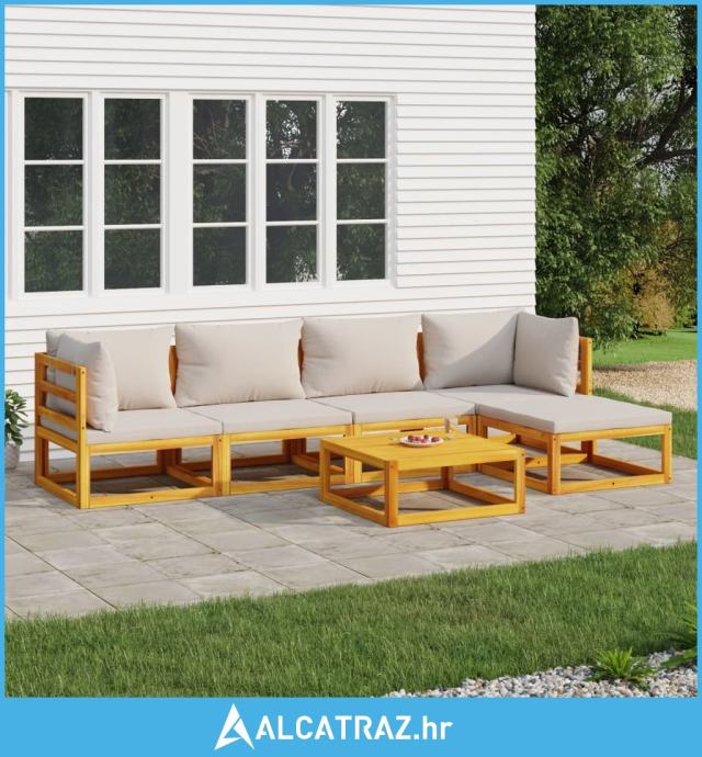 6-dijelna vrtna garnitura svjetlosivi jastuci od masivnog drva - NOVO