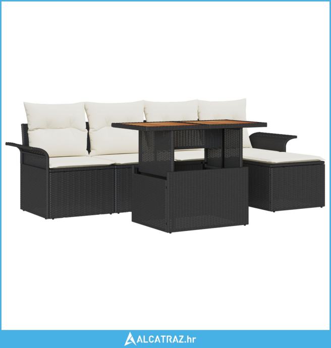 6-dijelni set za objedovanje u dvorištu s jastučićima crni poli ratan