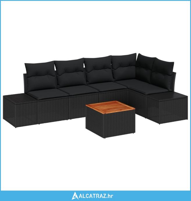 6-dijelni set sofe za vrt s jastučićima crni poliratan akacija - NOVO