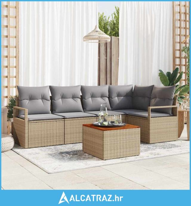 6-dijelni set vrtnih sofa s jastučićima Bež Poli ratan Akacija, 2-sjed