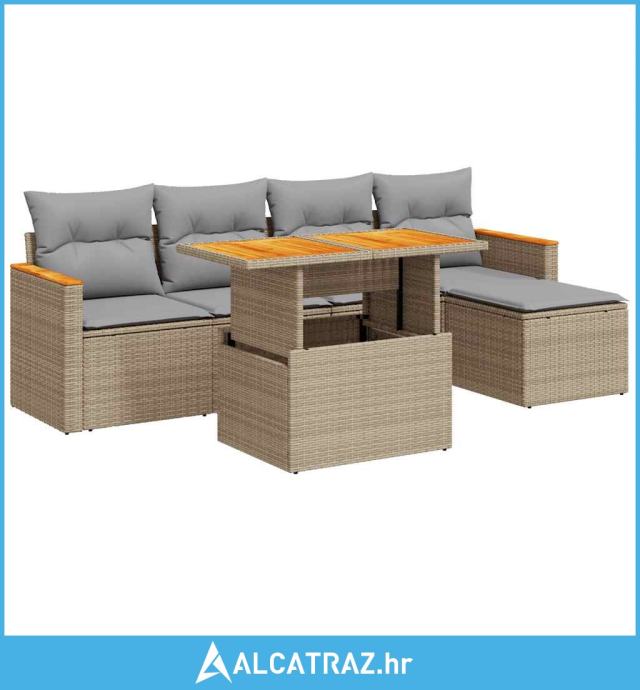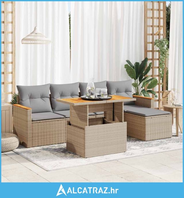 6-dijelni set vrtnih sofa s jastucima bež od poliratana bagrem - NOVO