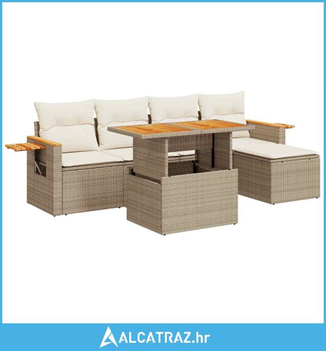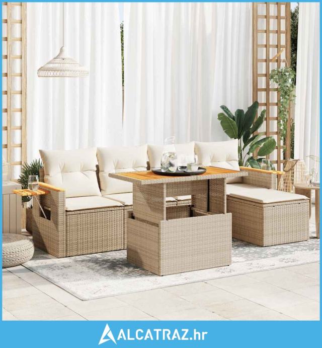 6-dijelni set vrtnih sofa s jastucima bež od poliratana bagrem - NOVO
