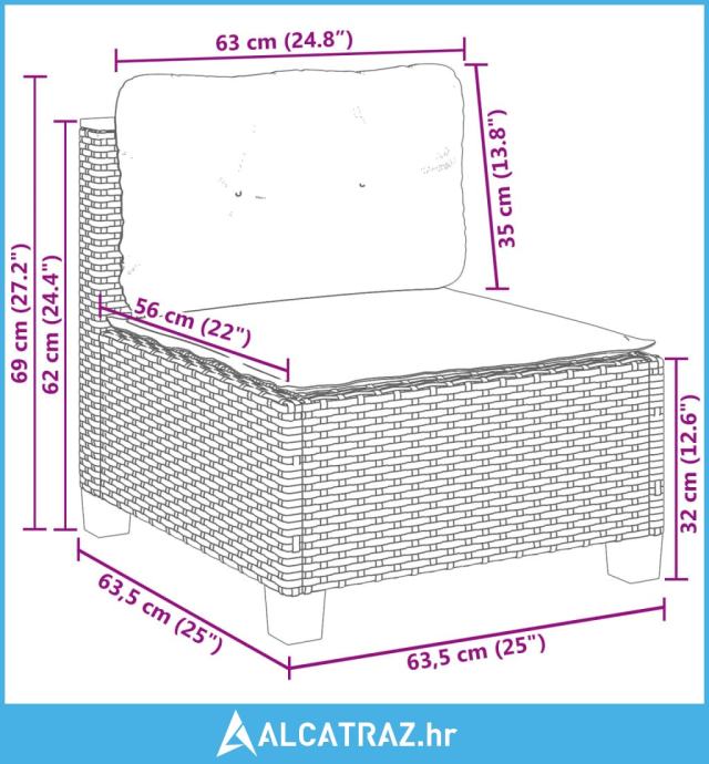 - Dimenzije jastuka za sjedenje (sredina): 63,5 x 56,5 x 3 cm (Š x D x T)
