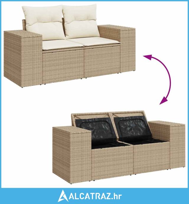 - Funkcija pohrane s vodootpornom vrećom: Vrtni namještaj ima prostor za pohranu ispod sjedala, zajedno s vodootpornom vrećom za spremanje jastuka, igračaka i drugih predmeta. Unutarnja vreća može se snažno pričvrstiti za vanjski namještaj pomoću kopči na čičak za dodatnu stabilnost.