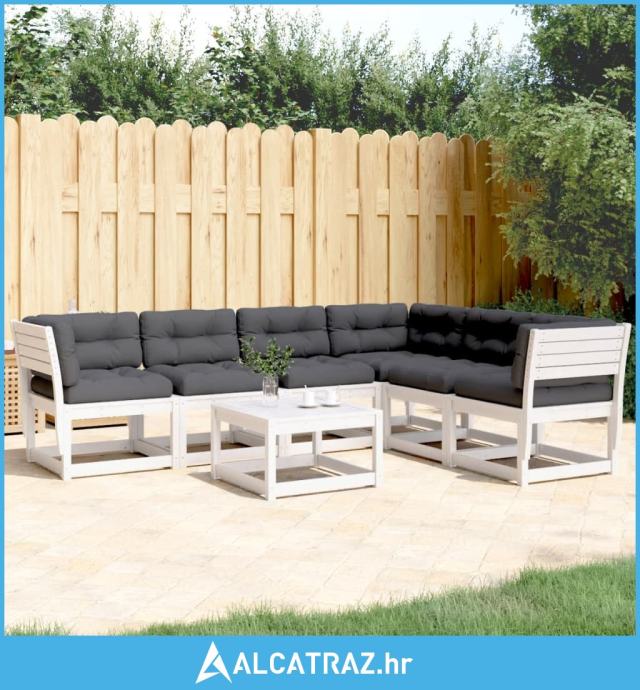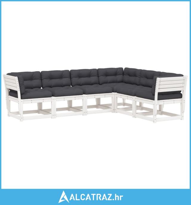 6-dijelni set vrtnih sofa s jastucima bijeli masivna borovina - NOVO