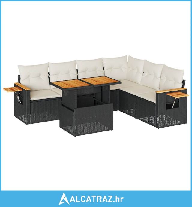 6-dijelni set vrtnih sofa s jastucima crni od poliratana bagrem - NOVO