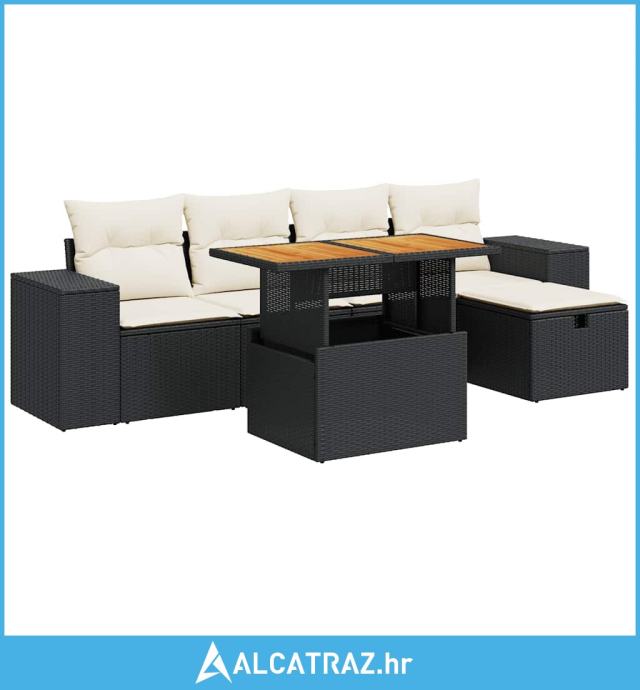 6-dijelni set vrtnih sofa s jastucima crni od poliratana bagrem - NOVO