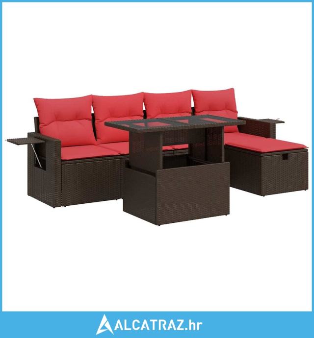 6-dijelni set vrtnih sofa s jastucima crni od poliratana bagrem - NOVO