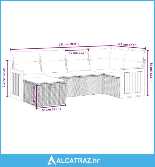 - Dimenzije jastuka za naslon: 55 x 45 x 13 cm (D x Š x Deb.)