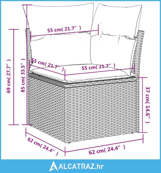 - Dimenzije jastuka za naslon: 55 x 45 x 13 cm (D x Š x Deb.)