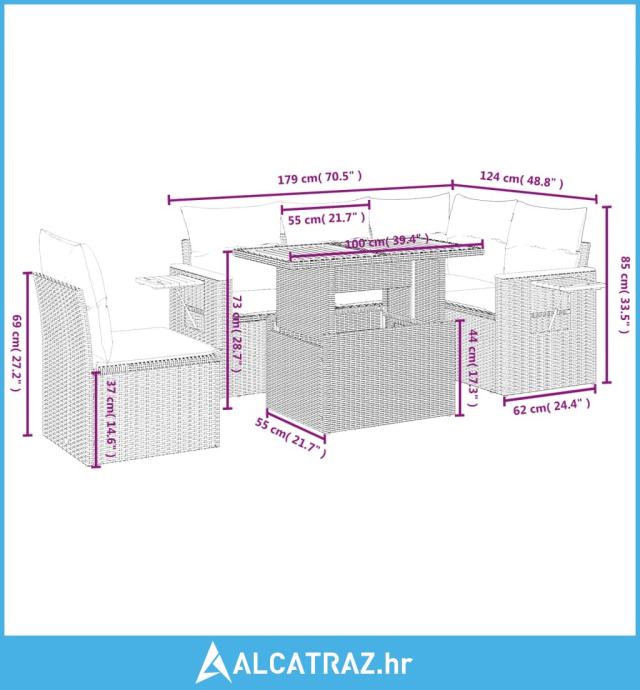 - Materijal: Ratan od PE-a, čelik obložen prahom