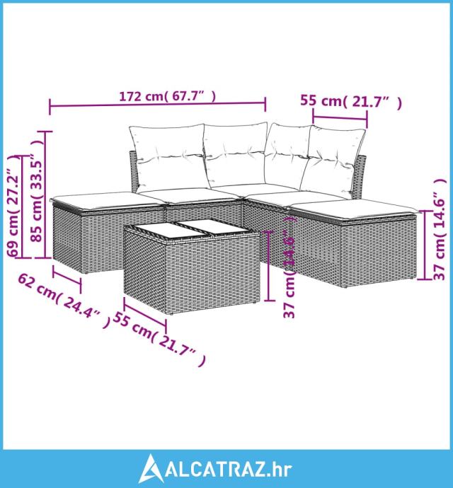 - Ukupne dimenzije sofe: 172 x 172 x 69 cm (Š x D x V)