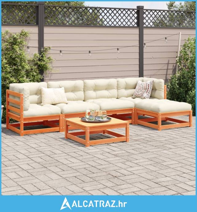 6-dijelni set vrtnih sofa s jastucima voštano smeđi od borovine - NOVO