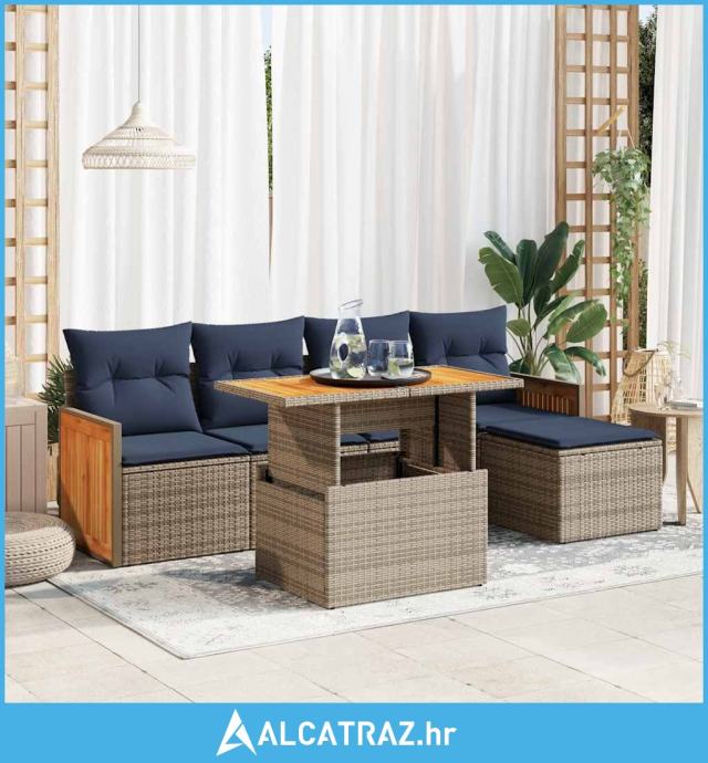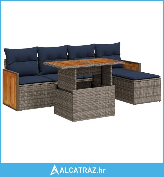 6-dijelni set vrtnih sofa poliratan i bagrem s jastucima sivi - NOVO