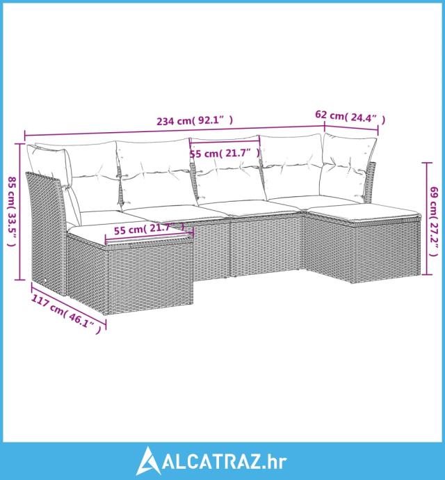 - Ukupne dimenzije sofe: 234 x 117 x 69 cm (Š x D x V)