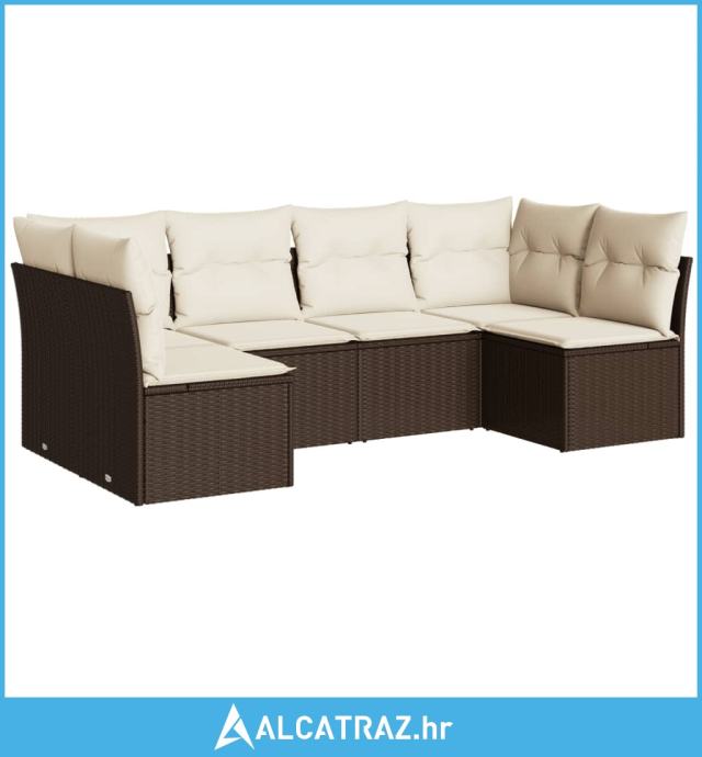 6-dijelni set vrtnih sofa od poliratana s jastucima smeđi - NOVO