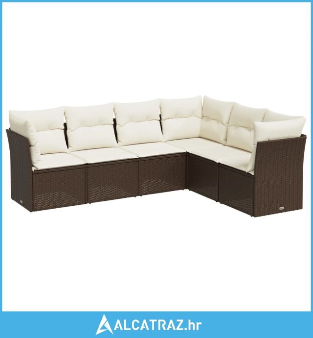 6-dijelni set vrtnih sofa od poliratana s jastucima smeđi - NOVO