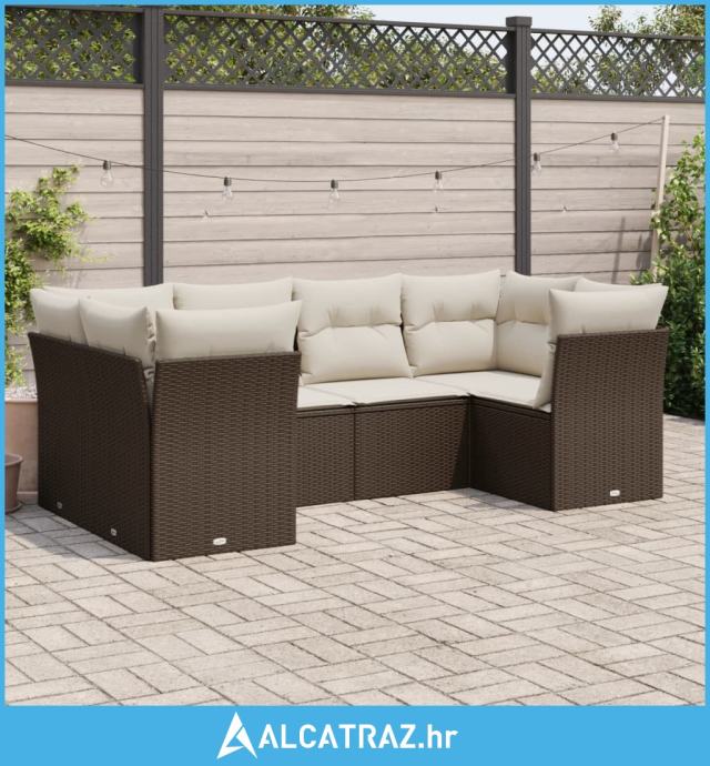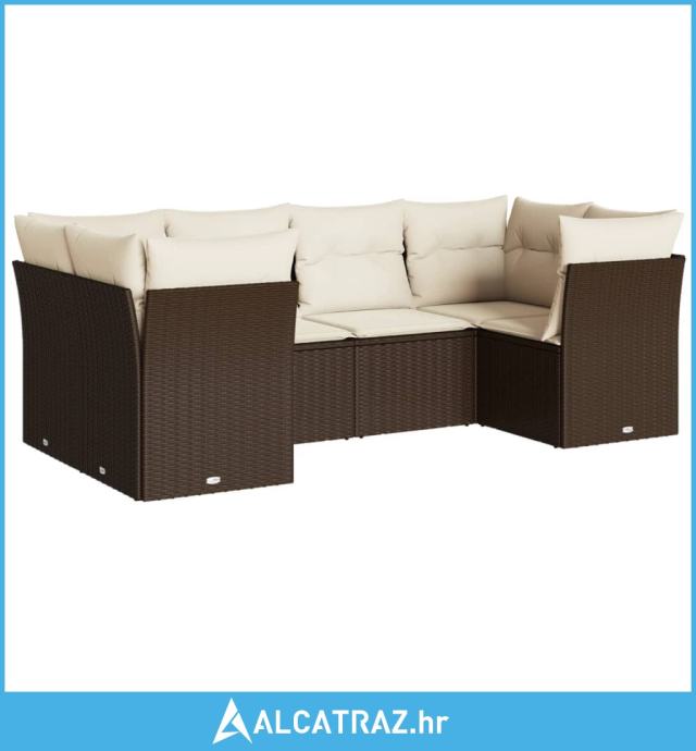 6-dijelni set vrtnih sofa od poliratana s jastucima smeđi - NOVO
