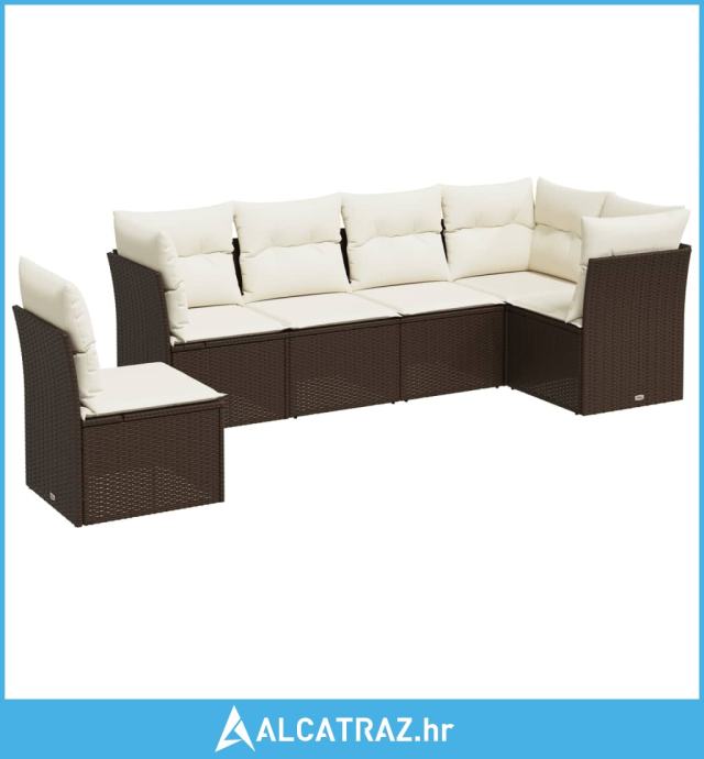 6-dijelni set vrtnih sofa od poliratana s jastucima smeđi - NOVO