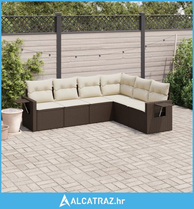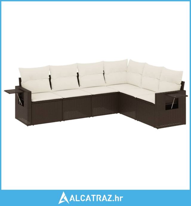 6-dijelni set vrtnih sofa od poliratana s jastucima smeđi - NOVO