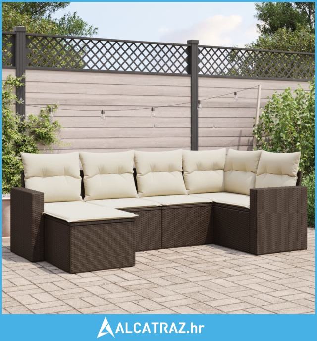 6-dijelni set vrtnih sofa od poliratana s jastucima smeđi - NOVO
