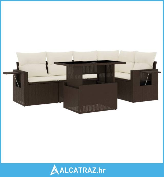 6-dijelni set vrtnih sofa od poliratana s jastucima smeđi - NOVO