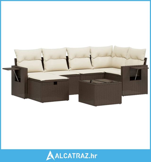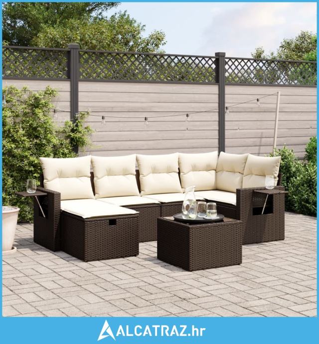 6-dijelni set vrtnih sofa od poliratana s jastucima smeđi - NOVO