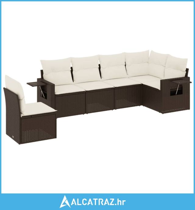 6-dijelni set vrtnih sofa od poliratana s jastucima smeđi - NOVO