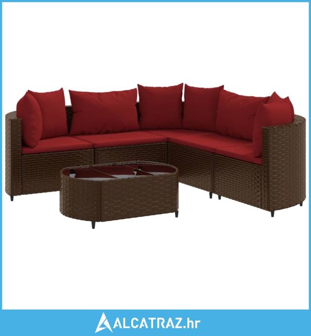 6-dijelni set vrtnih sofa od poliratana s jastucima smeđi - NOVO
