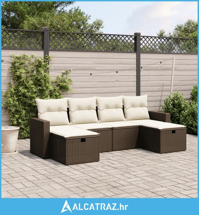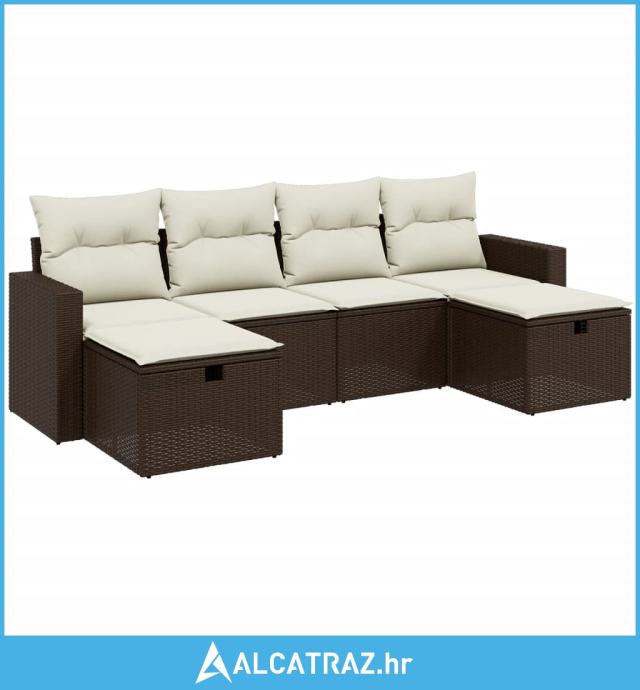 6-dijelni set vrtnih sofa od poliratana s jastucima smeđi - NOVO