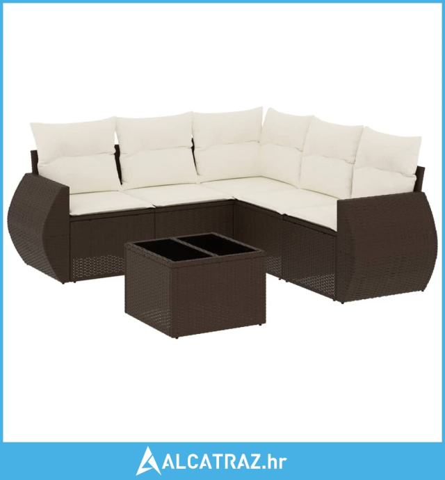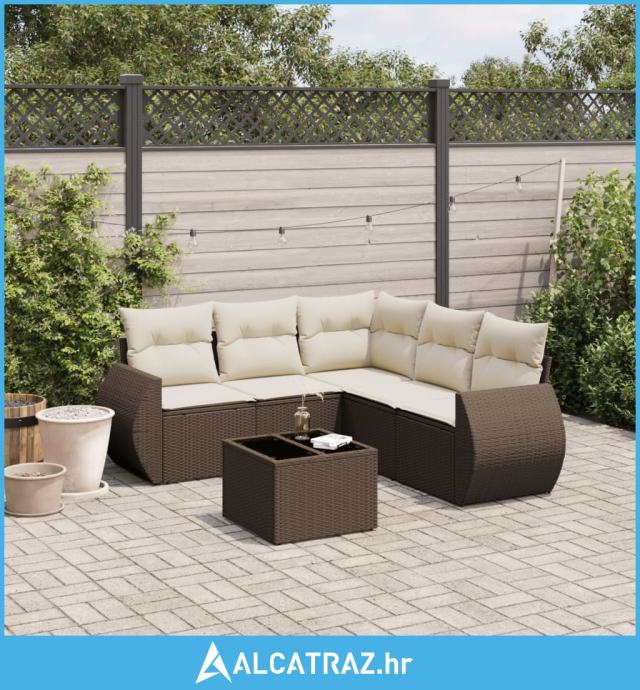 6-dijelni set vrtnih sofa od poliratana s jastucima smeđi - NOVO