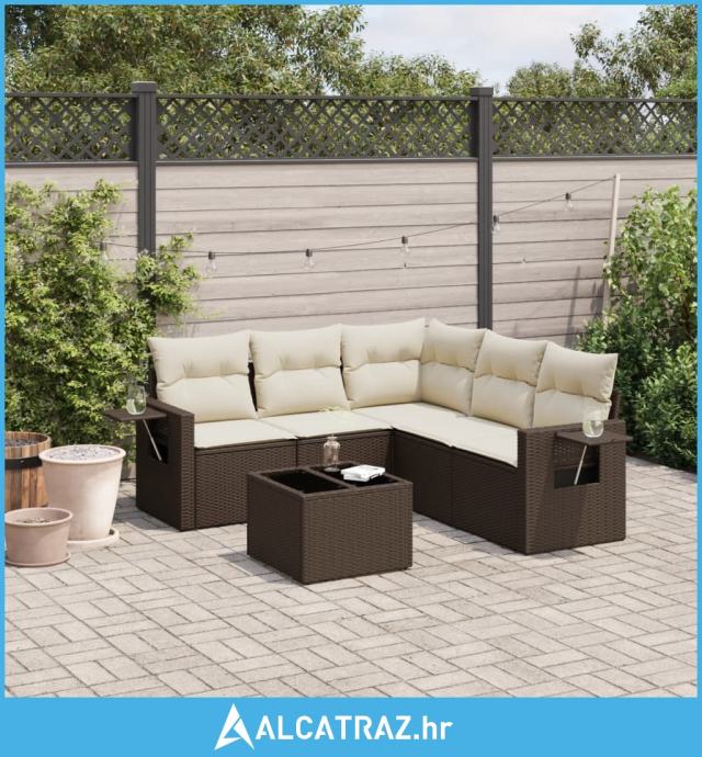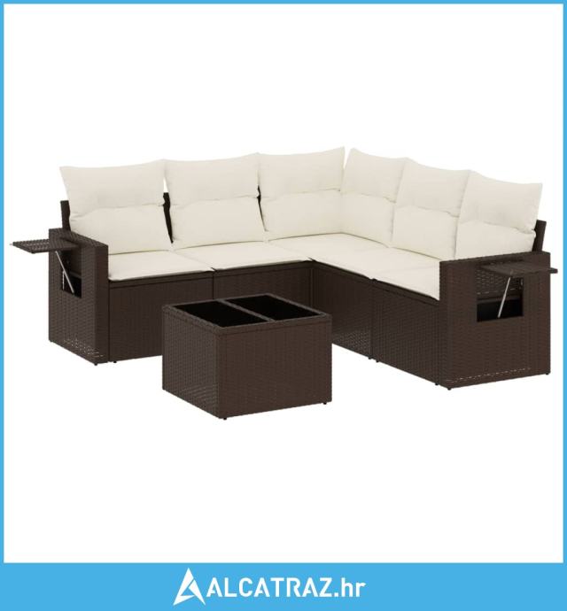 6-dijelni set vrtnih sofa od poliratana s jastucima smeđi - NOVO